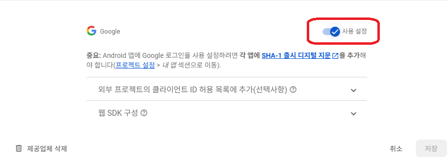 파이어베이스 auth 에 구글 계정을 연동하고 등록.